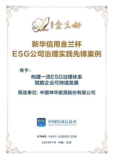2023年 2023年1月,入選“新華信用金蘭杯”ESG公司治理實踐先鋒案例